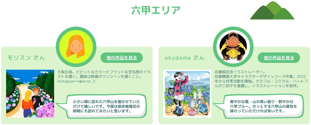 ■ また本施策では、計10名の関西出身のイラストレーターの方々にも協力いただき、各地の魅力とイラストレーターの魅力の双方が反映されたイラストを用意しました。こちらを通じて、より多くの方々に、関西の人と地域の魅力を再発見していただくきっかけになればと思います。