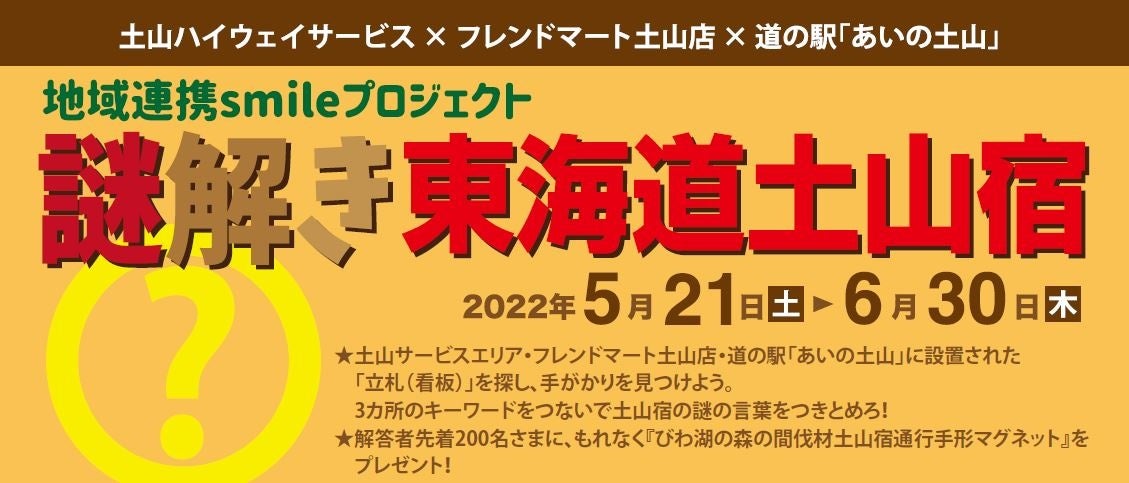 【道の駅あいの土山・土山ハイウェイサービス株式会社・フレンドマート土山店】滋賀県甲賀市土山町「地域連携smile」プロジェクト 「謎解き東海道土山宿」実施について
