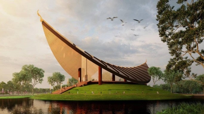 寺院建築「イサーン・シム」から着想を得た建物で、暮らしと信仰に根ざした静寂を体現