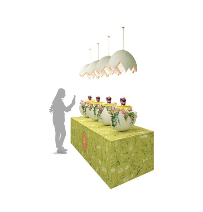 どなたも自由に楽しめるフォトスポット。エッグ型のオブジェにスイーツを乗せて、このイベントならではの特別な1枚を撮影してみては。