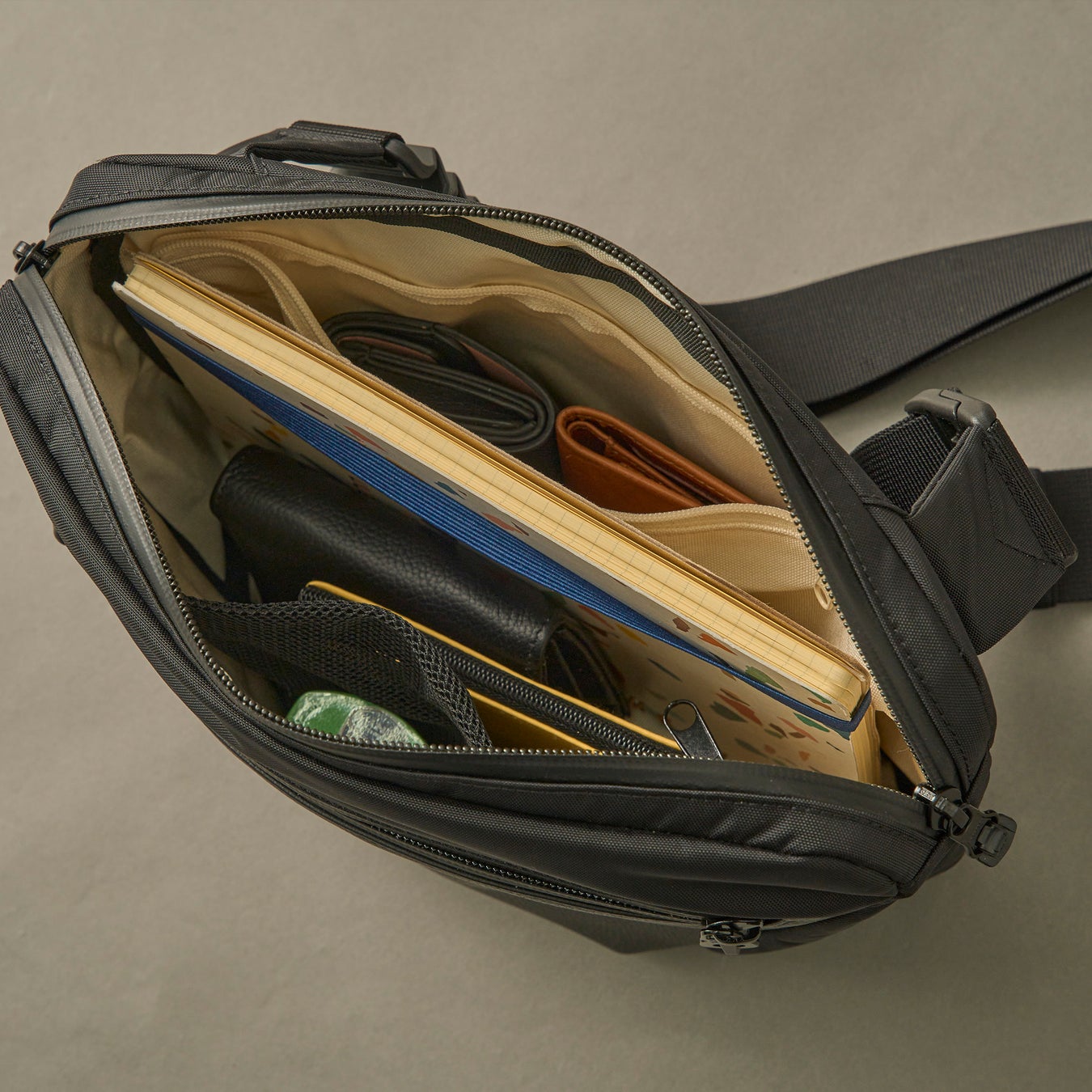 中型サイズで、500mlボトルや長財布も楽々収納できる万能ショルダー。