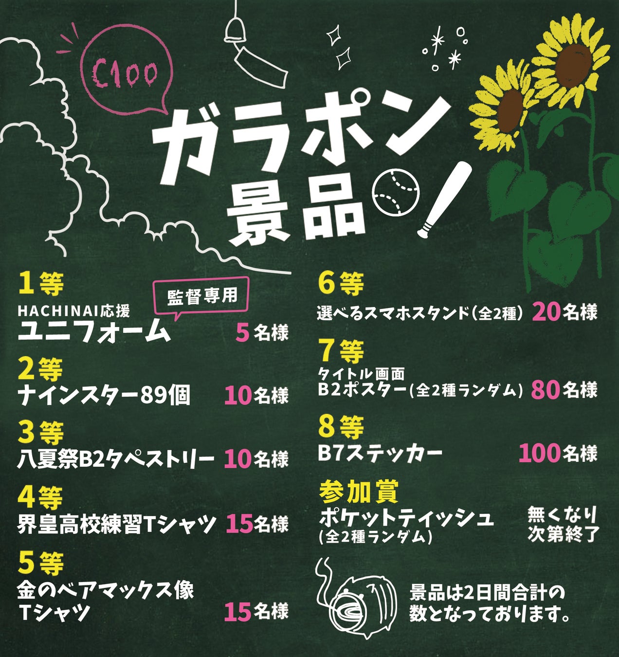 「HACHINAI応援ユニフォーム」を着用してご来場された監督さんは特別に2回引くことができます。