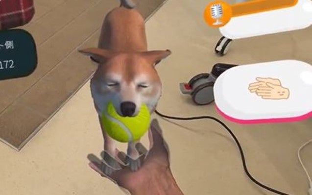 MR(複合現実)技術を活用することで、VRゴーグルを通してバーチャル犬と現実の周囲環境を見ることができます。これにより、体験中も周囲の人や家具などを視認でき、転倒や接触のリスク軽減を目指す設計になっています。