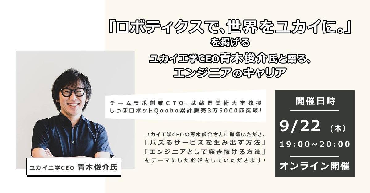 ユカイ工学CEO青木俊介氏と語る、エンジニアのキャリア オンラインイベント開催