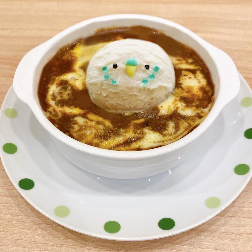 ★ことりカフェ心斎橋 新作ランチメニュー★ 可愛い鳥さんをモチーフにした「焼きチーズカレードリア」を2023/2/14に販売開始。