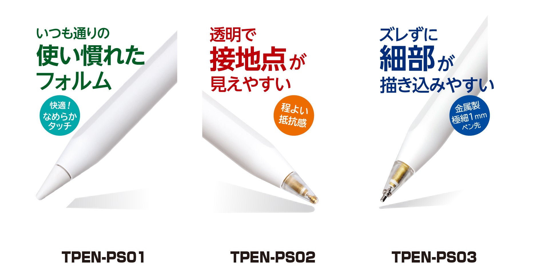 ラインアップは3種類。使用に従って消耗するペン先の交換用として使えるほか、好みの描き心地から選ぶことができますのでイラスト制作などでiPadを活用するクリエイターやiPadをノート代わりにしているユーザーに最適です。