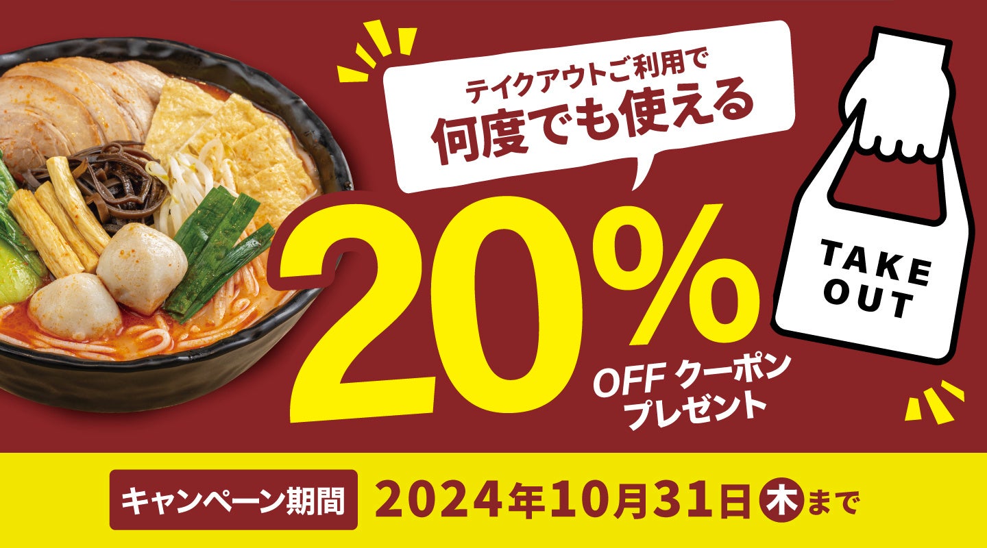 株式会社譚仔三哥日本(本社:東京都渋谷区、代表取締役 劉達民)が展開する、食の感動体験を追求し、「一度食べたら忘れられないウマさ。」を提供する香港発のライスヌードル店「譚仔三哥(タムジャイサムゴー)」(以下、譚仔三哥)は、テイクアウトをご利用の方に、11月中に使える「20%OFFクーポン」の配布キャンペーンを、2024年10月4日(金)から10月31日(木)まで期間限定で実施します。