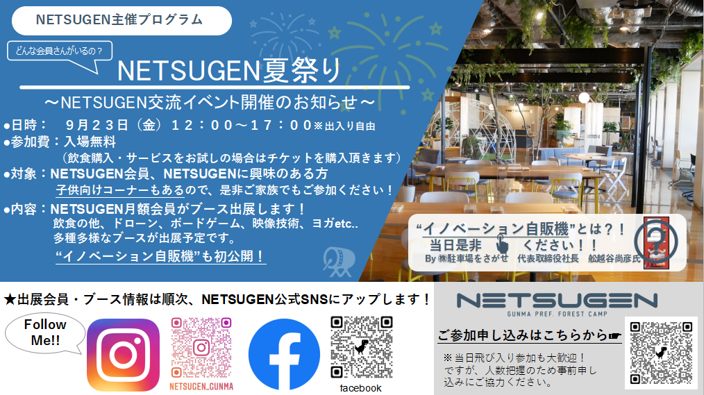 「NETSUGEN」公式Instagram:https://www.instagram.com/netsugen_gunma/
