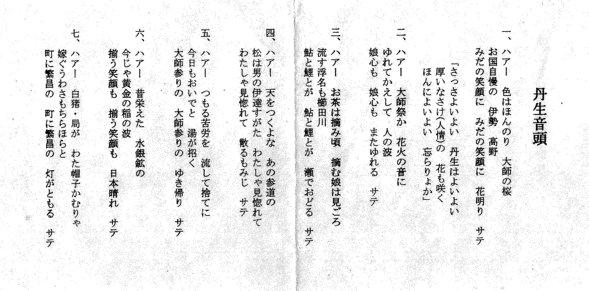 ▲丹生音頭の歌詞