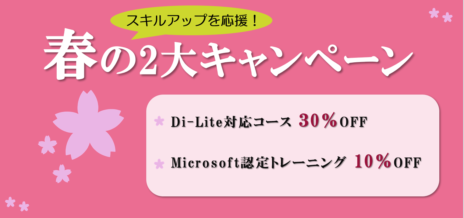 人材育成のトレノケート株式会社(本社:東京都新宿区、代表取締役社長:早津 昌夫、以下、トレノケート)は、お客様への日ごろの感謝を込めて、春の2大キャンペーンを実施します。ますます重要性を増すデジタル化やDX。すべての社会人に必要なデジタルリテラシーを学べるDi-Lite対応コース、データ活用や社内システムの専門家を育てる Microsoft の認定コースなど、幅広いコースが割引対象です。新年度に向けて、スキルアップを応援します。