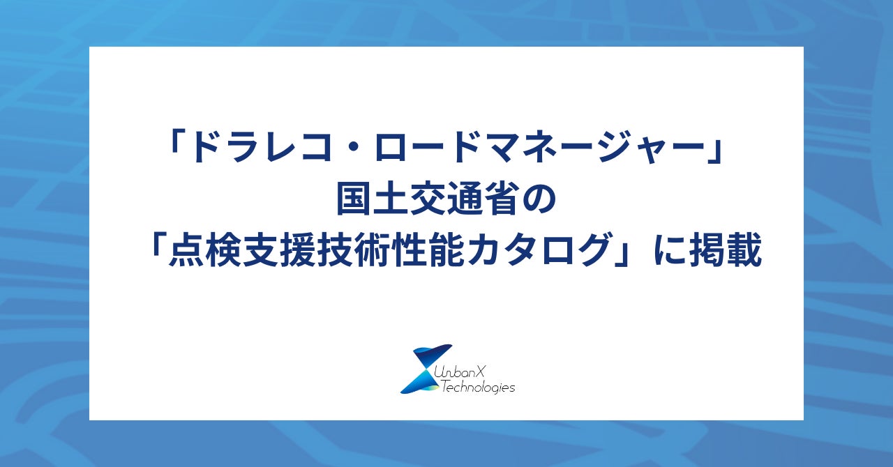 株式会社アーバンエックステクノロジーズ(本社:東京都中央区、代表取締役社長:前田 紘弥、以下 アーバンエックス)が三井住友海上火災保険株式会社と共同で提供する「ドラレコ・ロードマネージャー」が、国土交通省の「点検支援技術性能カタログ」に掲載されました。「点検支援技術性能カタログ」は、国が定めた標準項目に対する性能値を開発者に求め、国管理施策等において技術を検証した結果をカタログ形式でとりまとめたものです。