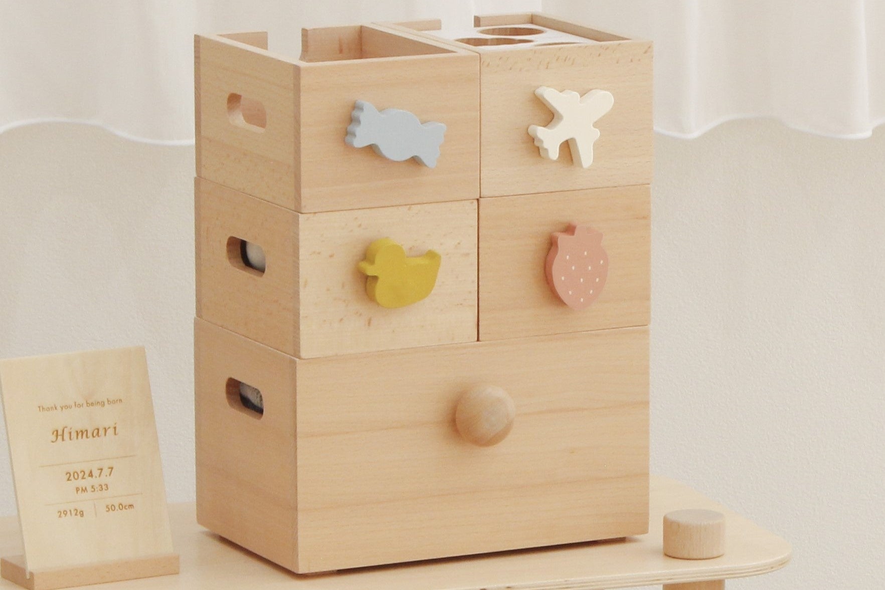 「スタッキングボックストイ」の蓋としても使用でき、記念日のギフトに特別感をプラスします。