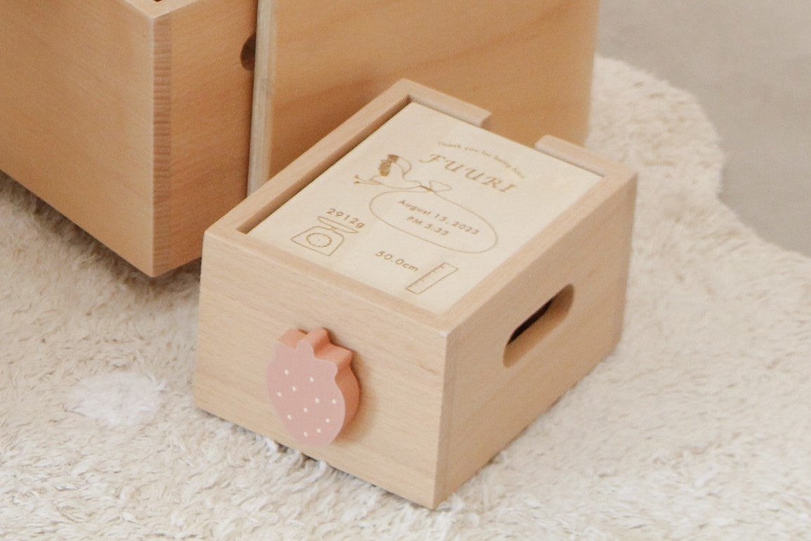 小さなお子様の手でも持ち運びやすいよう、ボックスには持ち手を付けました。