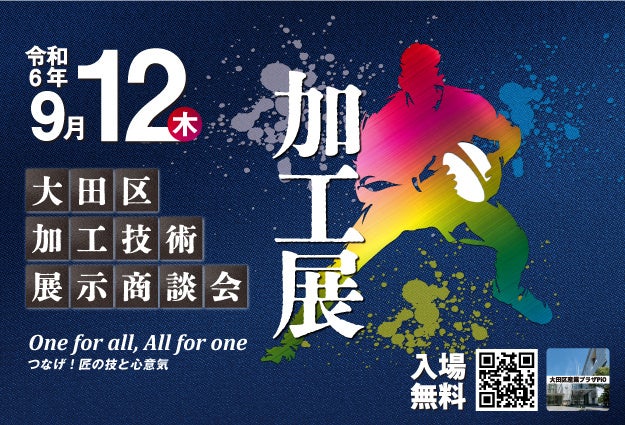 大田区ものづくり企業が集結する展示会「大田区加工技術展示商談会2024」が9月12日(木)大田区産業プラザPiOにて開催します。本展示会は、大田区企業のうち、加工業を主業とするものづくり企業の技術力を全国の大手・中堅企業等にアピールし、具体的な取引に繋げることを目的としています。