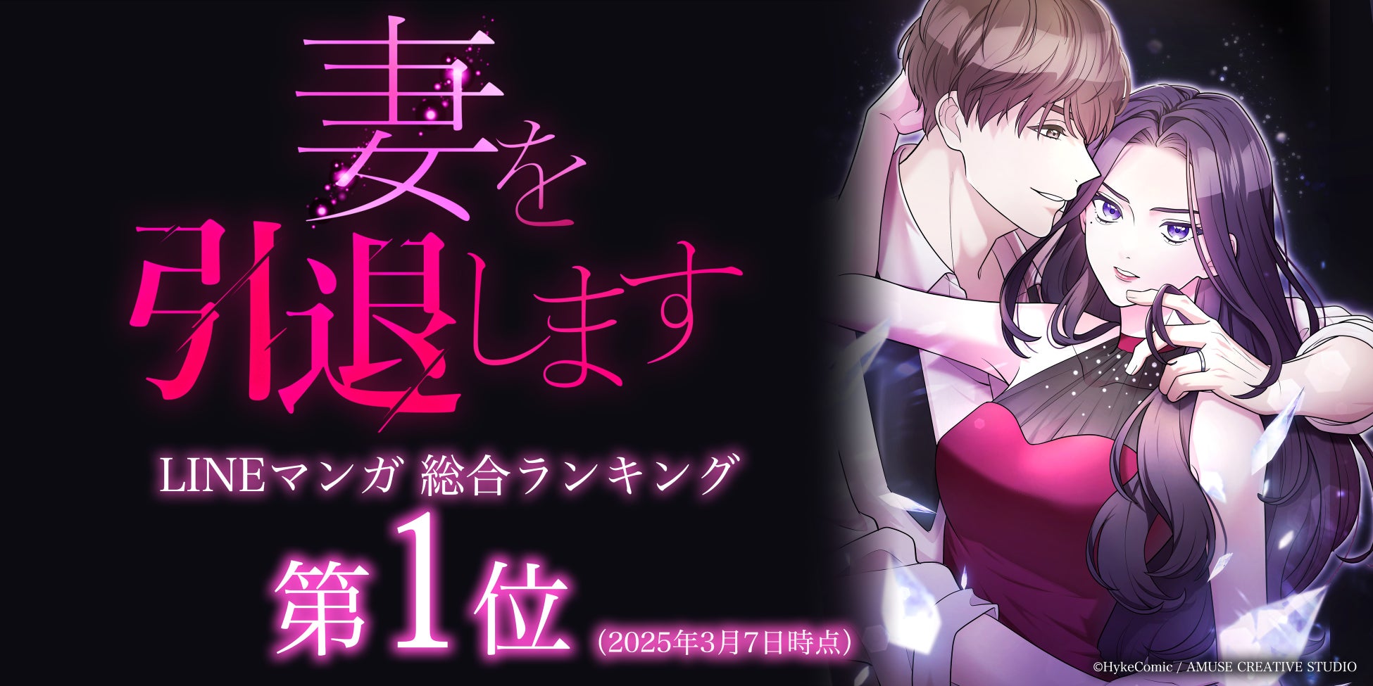 株式会社HykeComic(所在地:東京都品川区、代表取締役:香田哲朗、株式会社アカツキの100%子会社)は、株式会社アミューズクリエイティブスタジオ(所在地:東京都港区、代表取締役:荒木宏幸)とともに共同制作を行う『妻を引退します』の縦読みフルカラー漫画が配信を開始し、LINEマンガ 総合ランキング 第1位(2025年3月7日時点)を獲得いたしました。