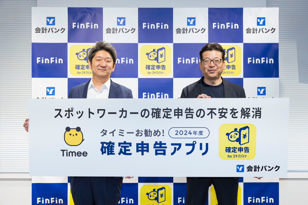 【会計バンク、タイミーと業務提携合意】「タイミー推奨2024年度確定申告アプリ」として「確定申告 for スキマバイト Powered by FinFin」11月14日より提供開始