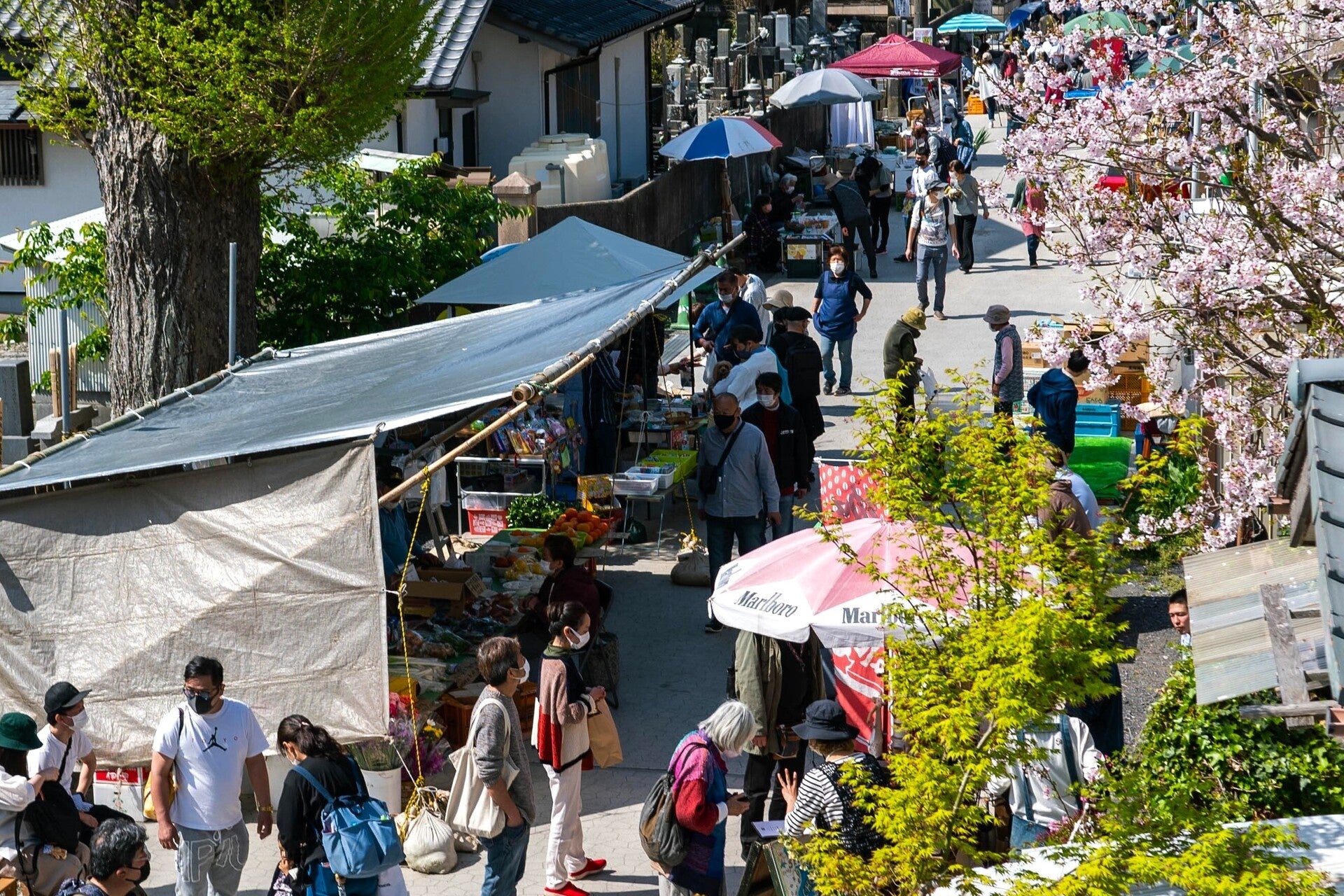 勝浦朝市は、430年以上の歴史を持つ、活気あふれる朝市です。地元で採れた新鮮な海産物や旬の野菜や果物など、一年を通して房総の豊かな山海の恵みが露店にずらりと並びます。これからの時期は特に国内でも有数の水揚げをほこる初鰹の時期ですが、それ以外にも夏野菜や食べ歩きできるグルメや雑貨類などのお店も多数出展しており、漁師町の雰囲気と併せて五感で楽しむことができます。