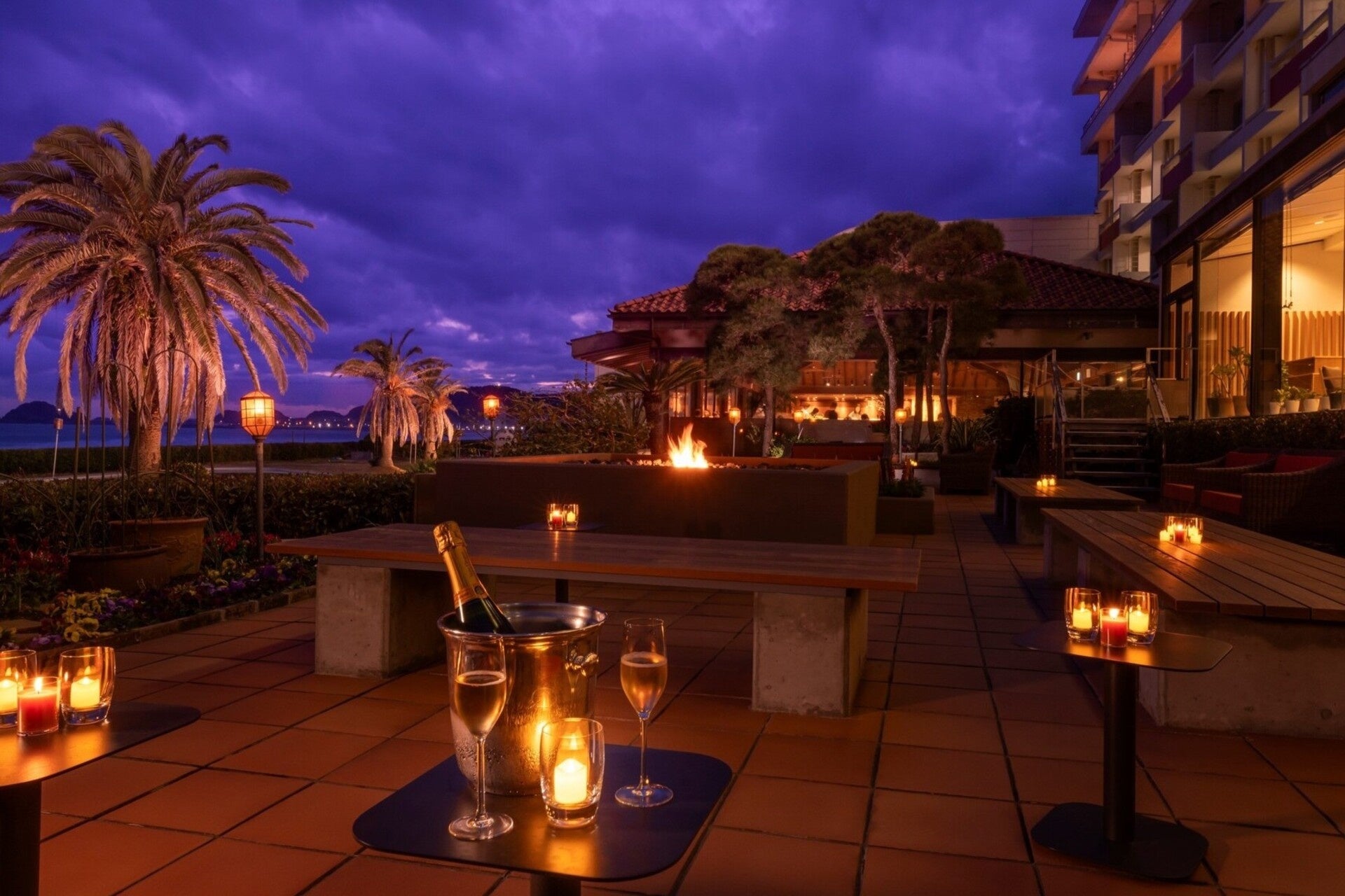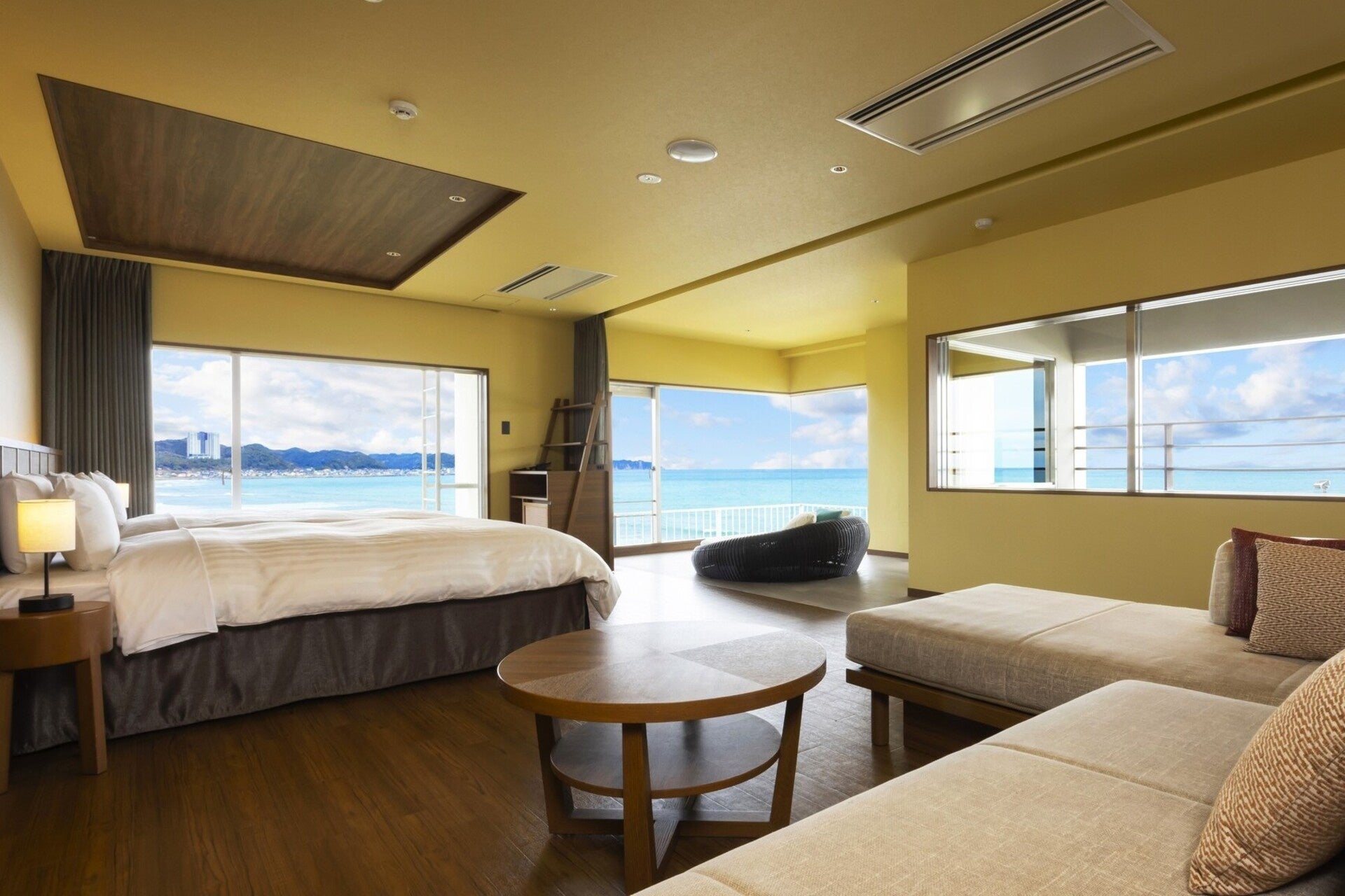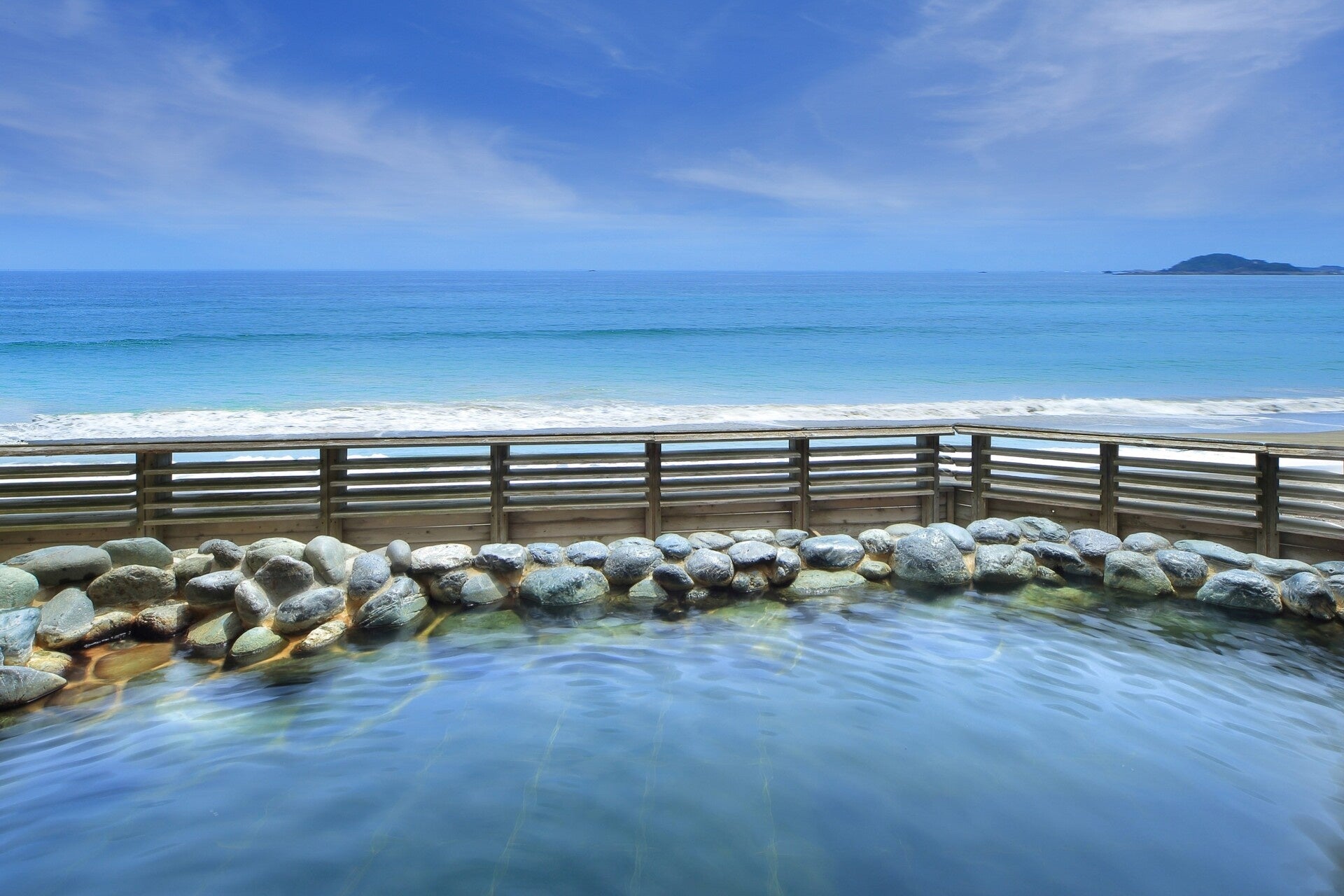 目の前に海しかない絶好のロケーションを楽しむことができ、オーシャン・フロントの客室はもちろん、温泉大浴場、貸切露天風呂、房総・鴨川の味覚を存分に味わえるレストラン「THE GUNJO RESTAURANT」など、館内のいたるところから海の恵みを堪能いただけます。