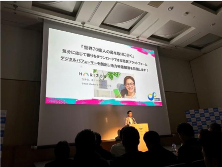 により、沢山の人が香り市場にエントリーできる仕組みを実現し、『デジタルパフューマ―』という新たな職種を創出することをプレゼンテーションでお伝えしました。