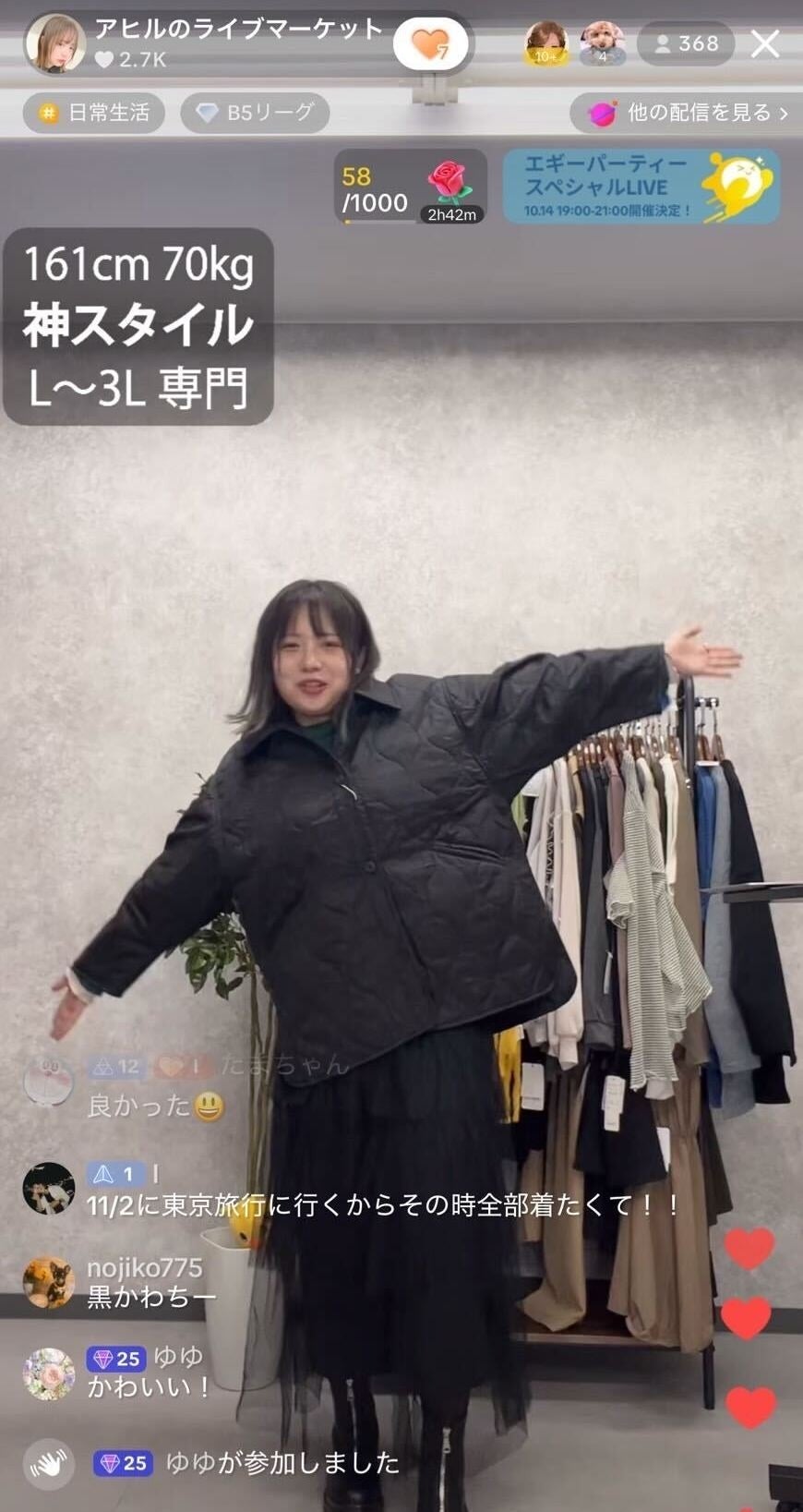 セレストの主な業務であるライブコマーサーのプロデュースの一環として、「アヒルのライブマーケット」のリブランディングを実施。アヒルのライブマーケットの体型が161cm/70kg(近しいスタイルを配信では“神スタイル”と呼称)であることを活かして、チャンネルコンセプトを「自分の体型を受け入れ、そのうえで好きなファッションを楽しもう」と設定し、L~3Lサイズのアパレルを専門的に販売するチャンネルへとリブランディングを行いました。このコンセプトが視聴者の共感を生み、新たな顧客層の開拓に繋がりました。神スタイルの顧客層が集まったことで、痩身系のグッズやサプリメントの販売実績も大きく拡大。3時間ほどの配信で1,000万円もの売上を作りだしています。