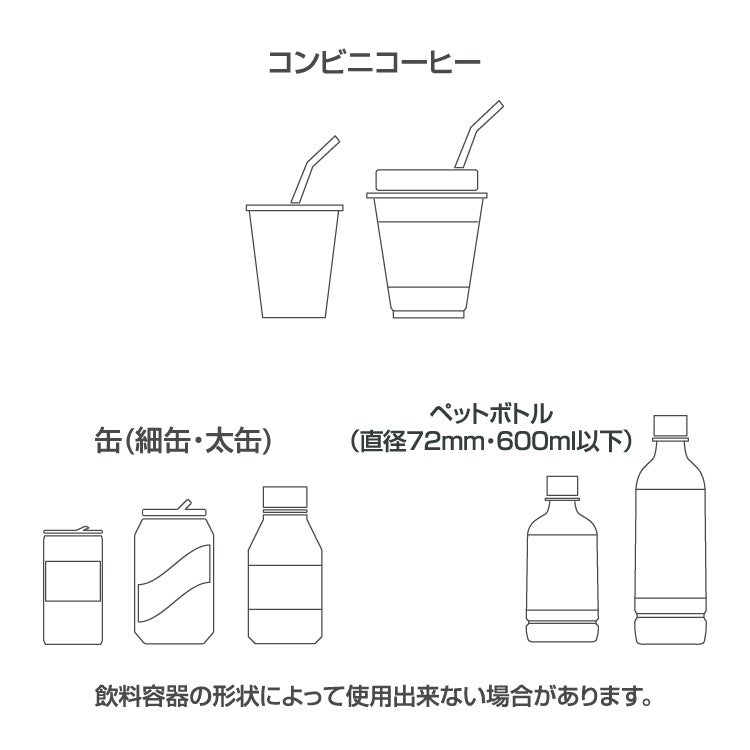 600mlペットボトル(直径72mm・600ml以下)/細缶/太缶/コンビニコーヒーに対応。