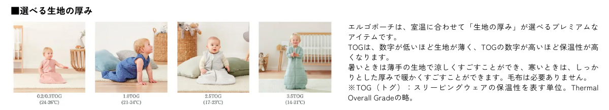 ・TOG:0.2(室温:24-26℃)、1.0(室温:21-24℃)、2.5(室温:17-23℃)の3タイプ