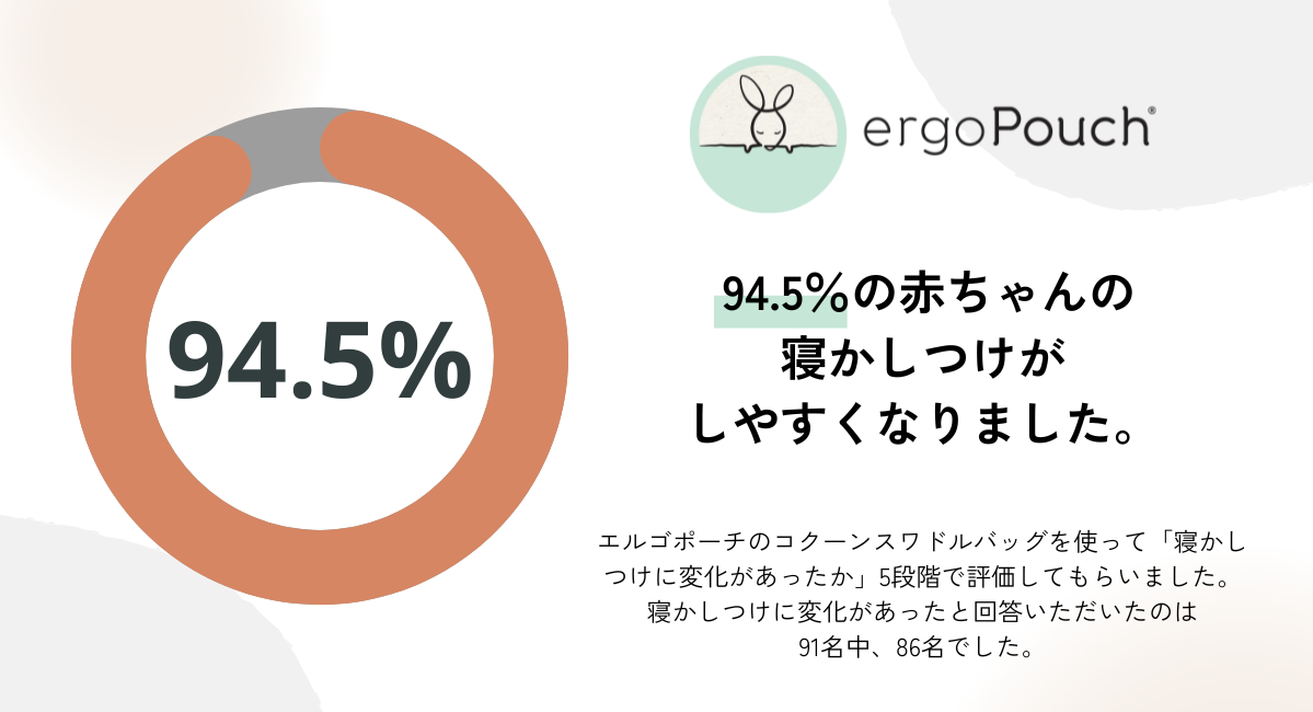 エルゴポーチのスワドルを使用し、94.5%の方がお子さまの「寝かしつけがしやすくなった」と回答。