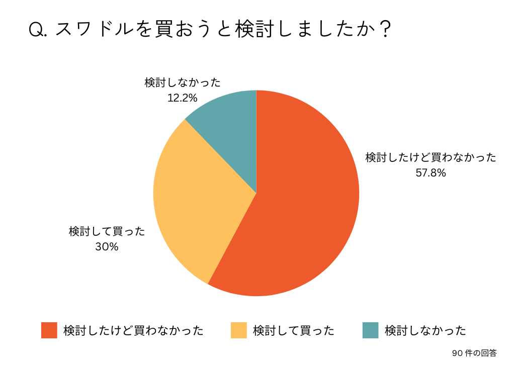赤ちゃんが安全で安心できるように、赤ちゃんを繭で包む昔からの習慣によって生まれたものですが、エルゴポーチのモニターに参加する前に、「スワドルを買おうか検討しましたか?」の設問には、検討しなかった、検討したけど買わなかったの回答が70%もの結果となりました。