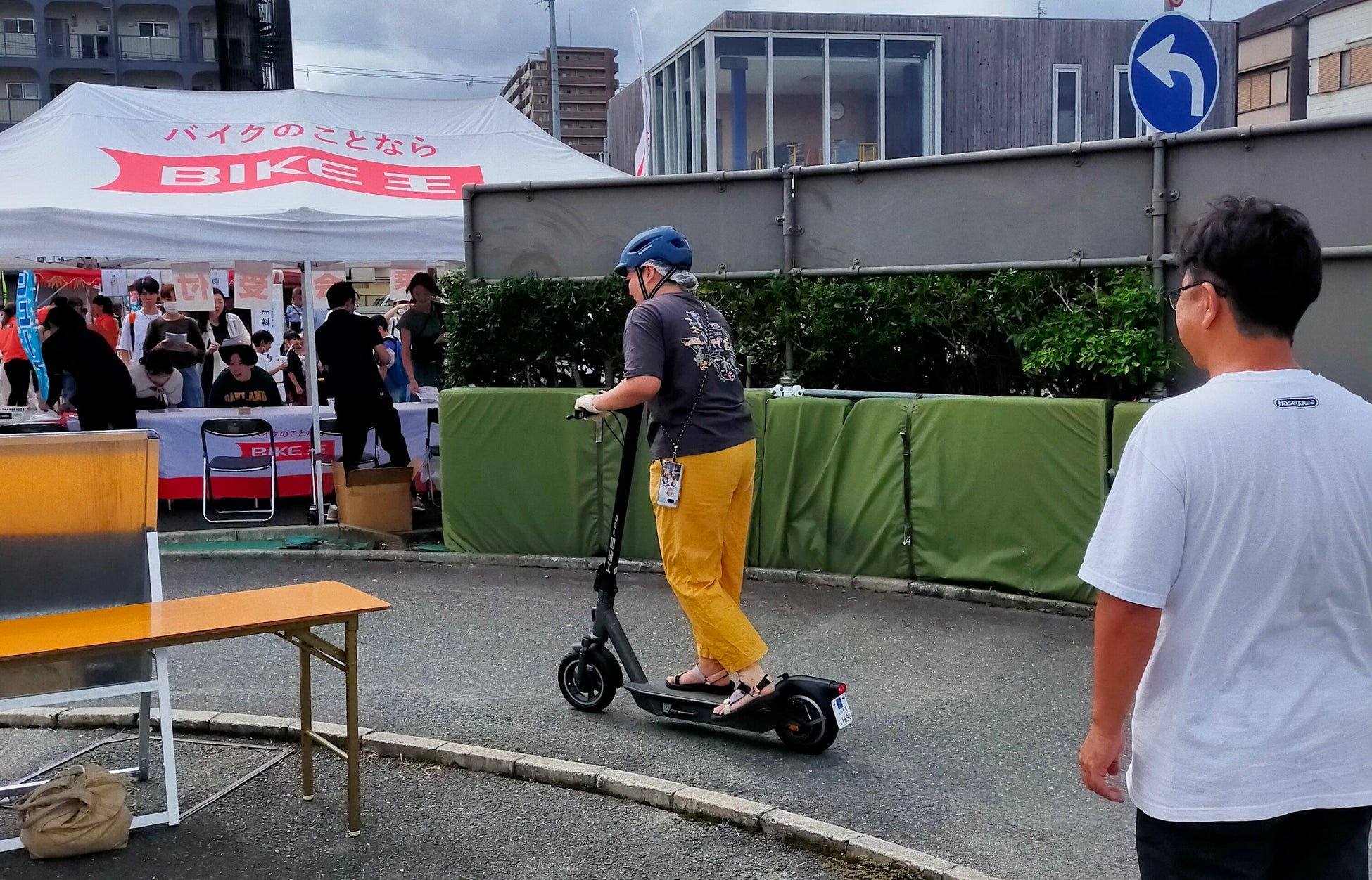 寝屋川警察署と連携し、試乗する方に向けて特定小型原付に関する知識や交通ルールに関しての説明を行いました。