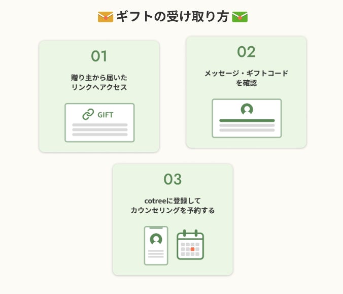 cotreeのカウンセリングギフトはメッセージを添えてオンラインカウンセリングを贈ることができるサービスです。