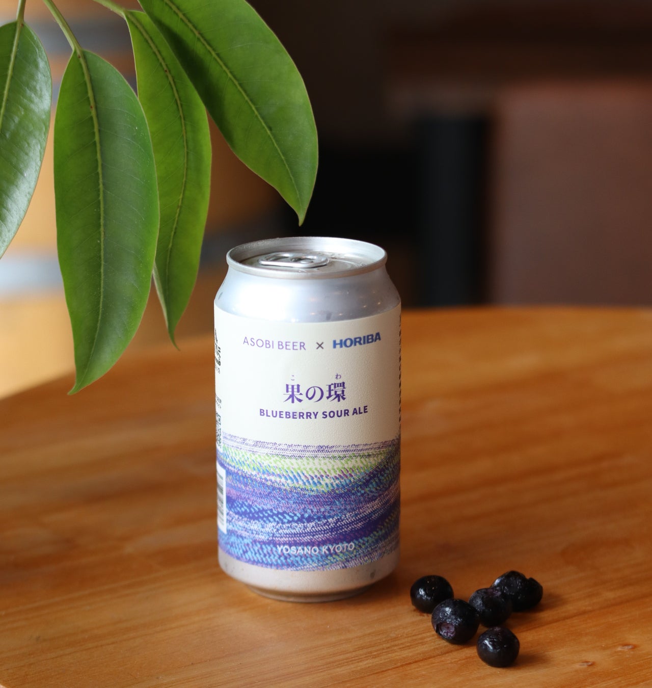 「HORIBA Blueberry Farm」で収穫されたブルーベリーは、これまでジャムやジュースなどの加工品として土産物等に活用され、ご好評をいただいてきました。さらなるラインアップの拡充を検討するなかで、クラフトビール「ASOBI BEER」の製造・販売を手掛けるローカルフラッグと出会い、京都や地域を盛り上げていきたいというおもいが共鳴したことで、ブルーベリーサワーエール「果の環」の誕生へとつながりました。