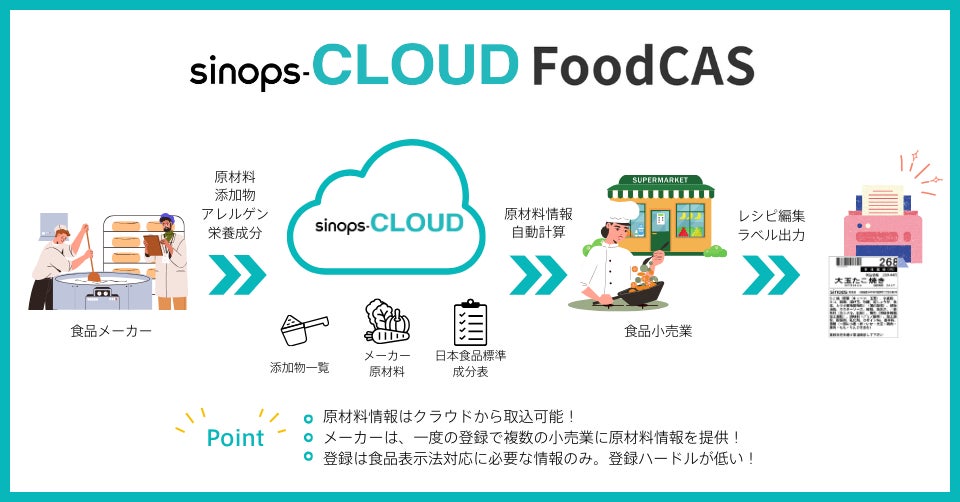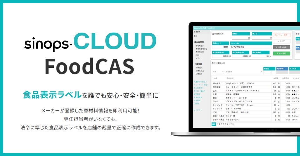 食品表示ラベル作成を店舗でも、安心・安全・簡単に「sinops-CLOUD FoodCAS」提供開始