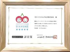 「やまがたスマイル企業認定制度」とは、「ワーク・ライフ・バランス」や「女性の活躍」などに積極的に取り組んでいる企業等を県が認定するもので、今回ゼオンケミカルズ米沢は、6つすべての認定基準*を満たしました。これは、山形県⽶沢市では唯一の企業となるものです。⼦育て⽀援や、⼥性社員のキャリア形成⽀援など、時代に合わせた働き方の推進をゼオンケミカルズ米沢が積み重ねてきた結果であり、今後も社員全員が活躍できる企業を目指します。