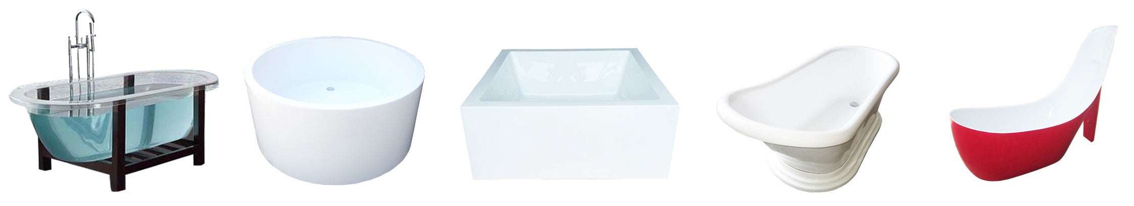 他にもデザインやサイズが異なる置き型バスタブ、猫足バスタブや透明のバスタブ、ペット用バスタブ、足湯バスタブもございます。