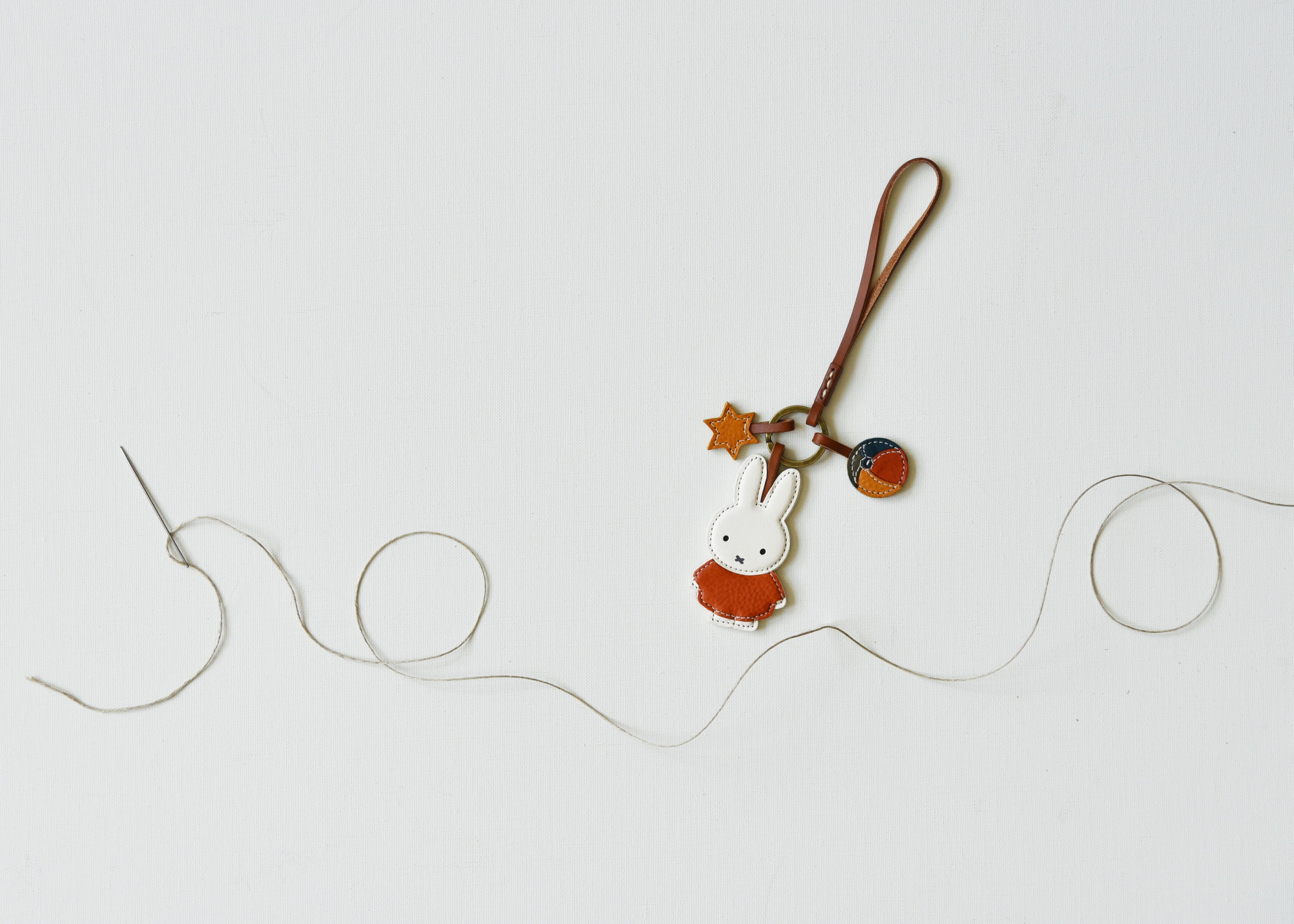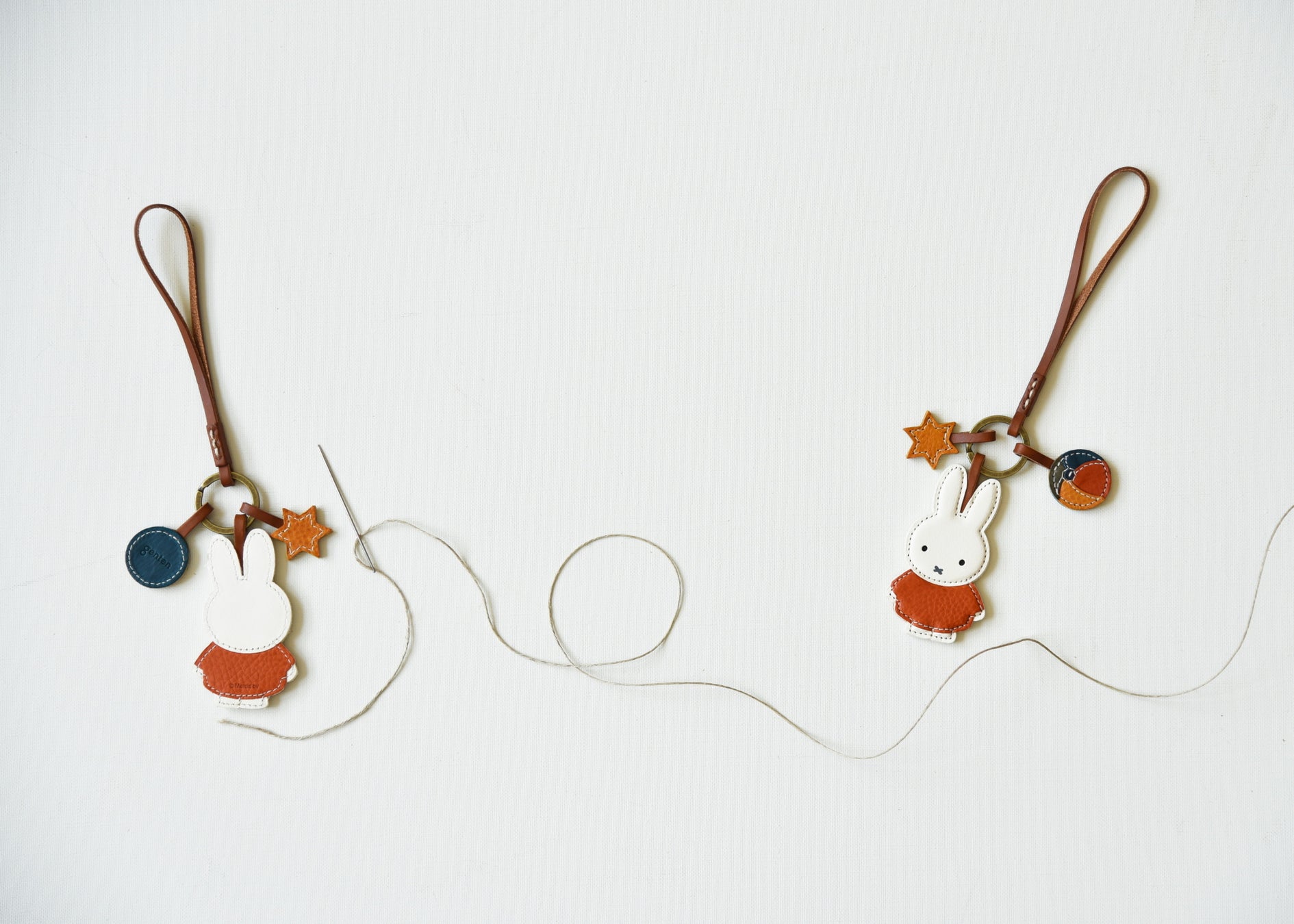 gentenでは、ミッフィーを“革”で表現。糸ステッチの線や、ポンチの穴や裁断による表情は手作業ならではあたたかな味わいがあります。