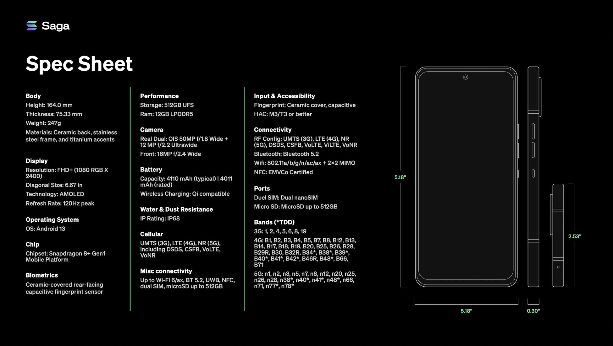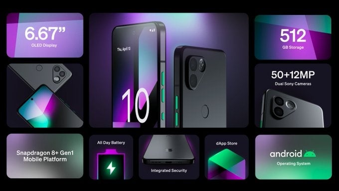 経験豊富な OSOM (https://www.osomprivacy.com/) チームとの共同開発により、洗練されたシンプルなデザインでハイスペック (Snapdragon® 8+ Gen 1 Mobile Platform, 12GB of RAM, 512GM of Flash, 6.67” OLED Display) なスマートフォンを実現。$1,000 という販売価格で Web3 に必要なすべてを満たすことに成功しました。