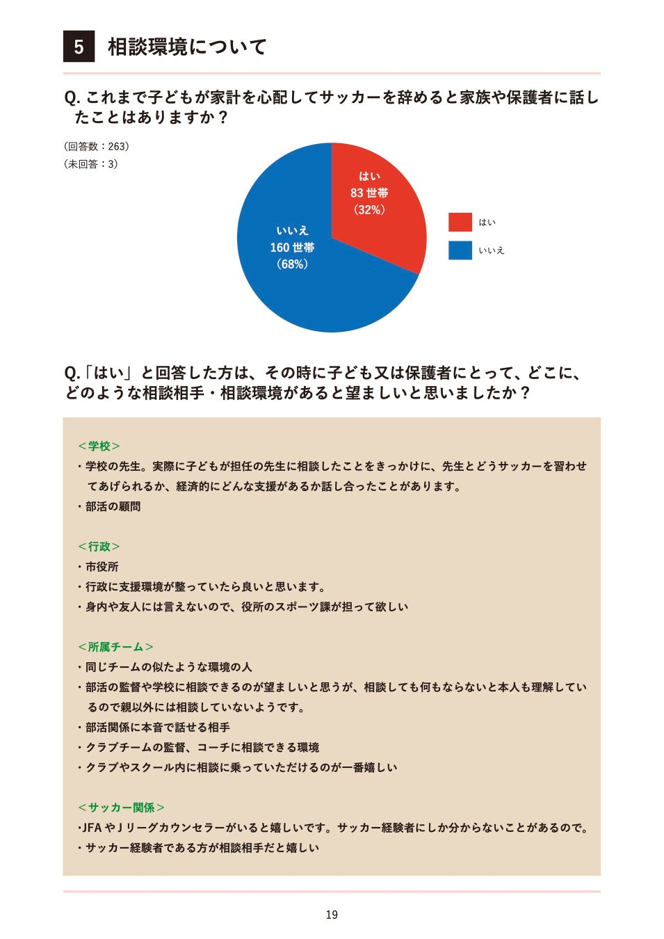 32%の世帯の子どもが、これまでに家計を心配して家族にサッカーを辞めると話した経験があると回答