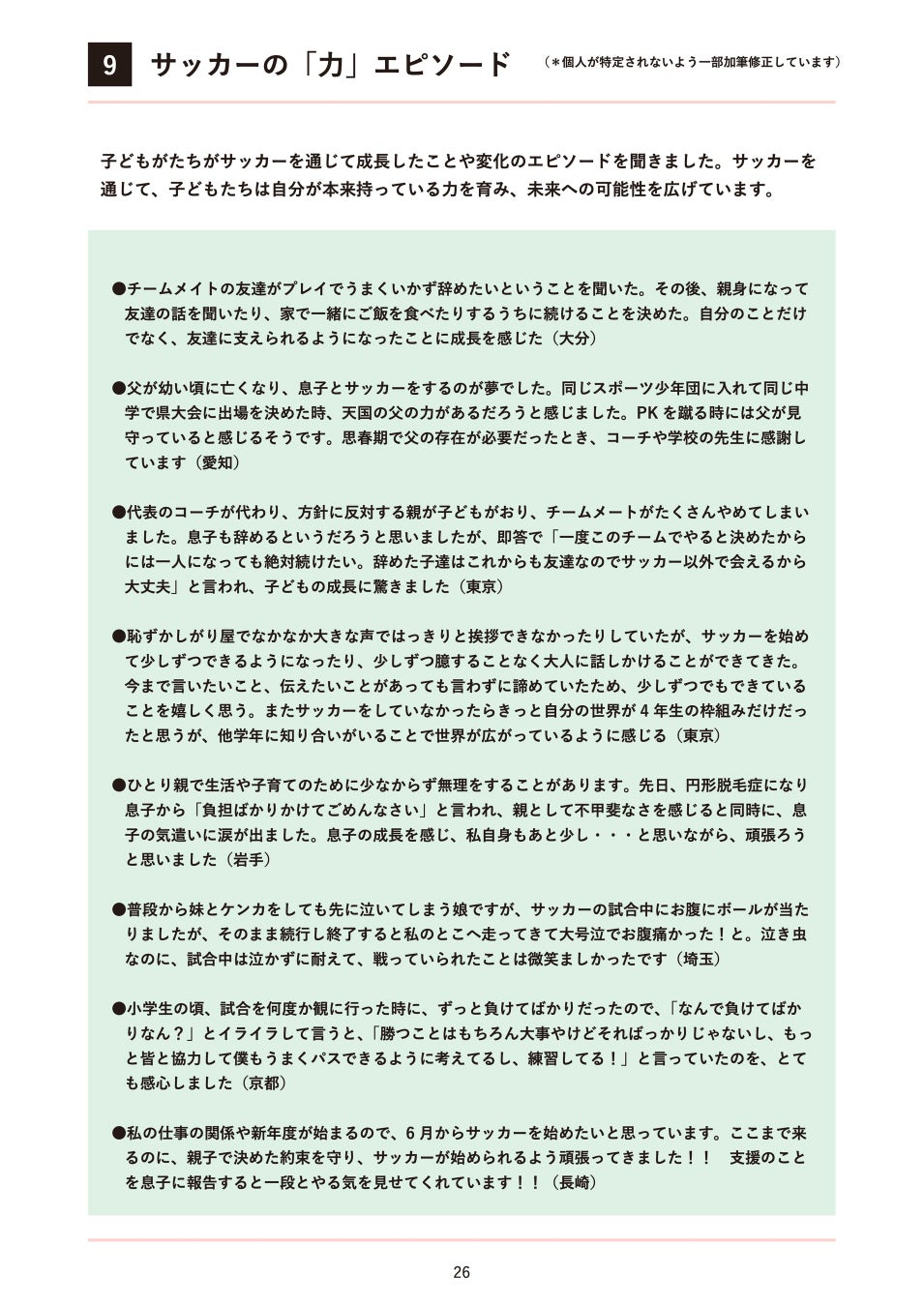 ・子どもがサッカーを通じて成長したことや変化のエピソード集