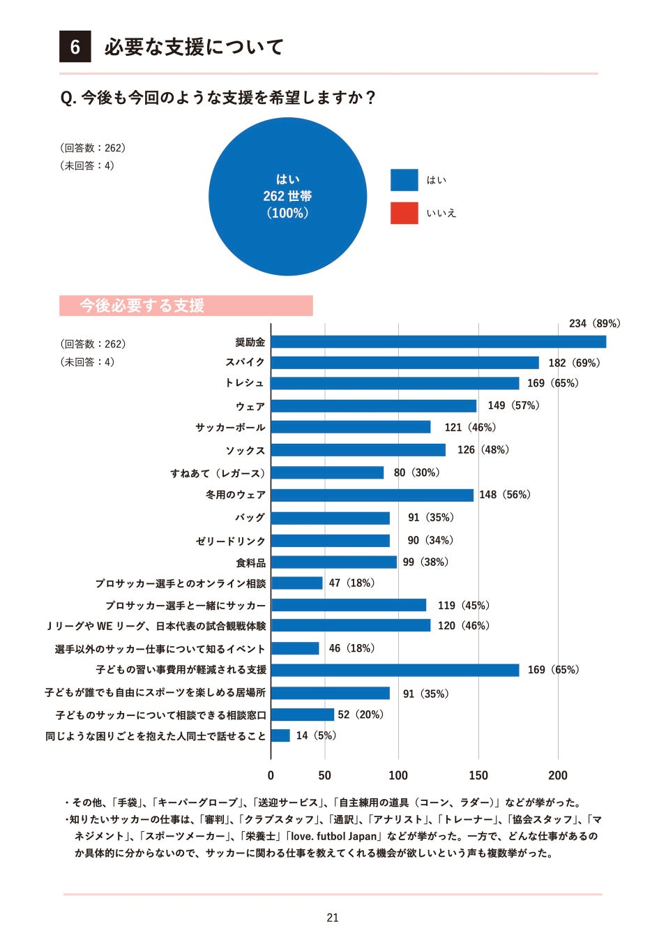 ・所属チームがひとり親、または困窮世帯向けの補助制度を開始する場合に希望する内容、および希望しない場合の理由