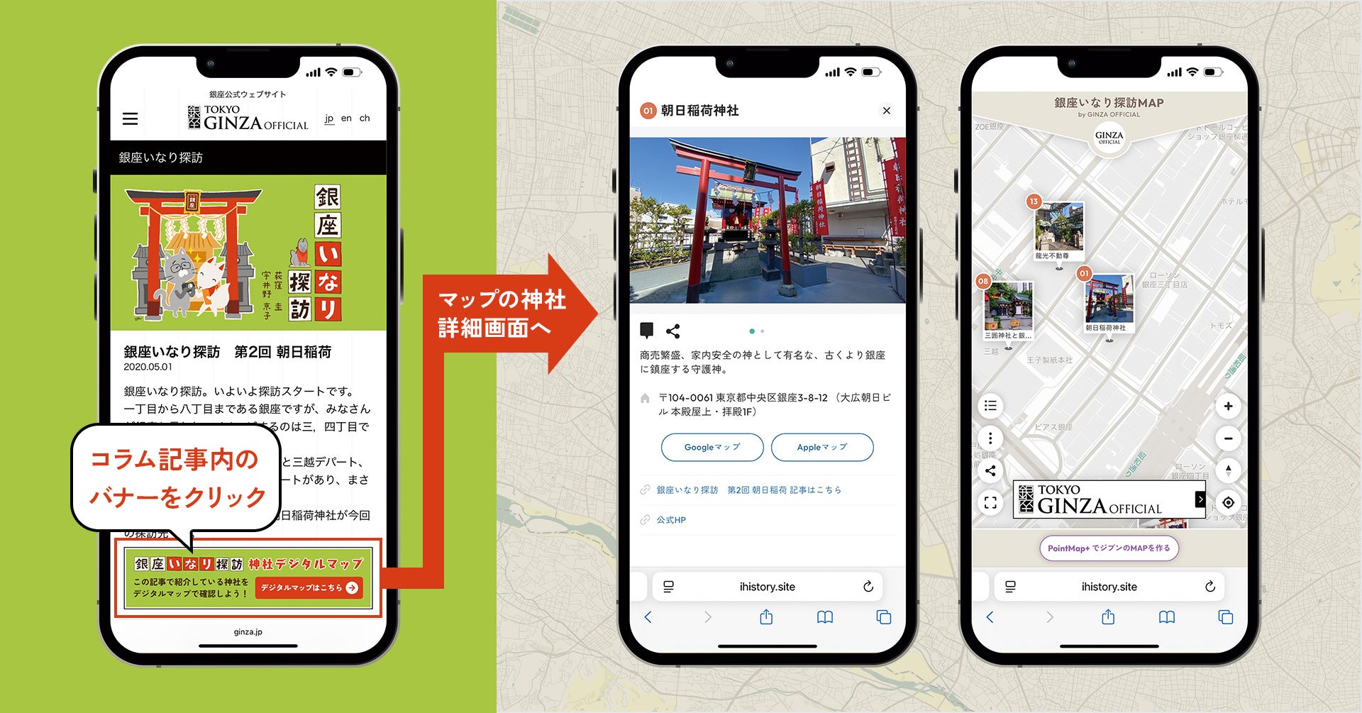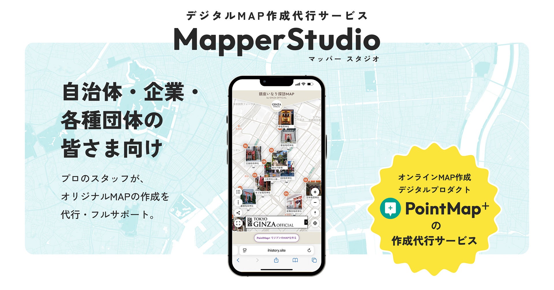【事業連携】銀座公式Webサイト「GINZA OFFICIAL」内のコラムを『PointMap+』でデジタルマップ化!第一弾の「銀座いなり探訪MAP」が完成しました。/スタートアップ iHistory