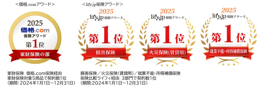 「お部屋を借りるときの保険」「働けないときの保険」複数保険比較サイトで“2025年保険アワード第1位”を受賞