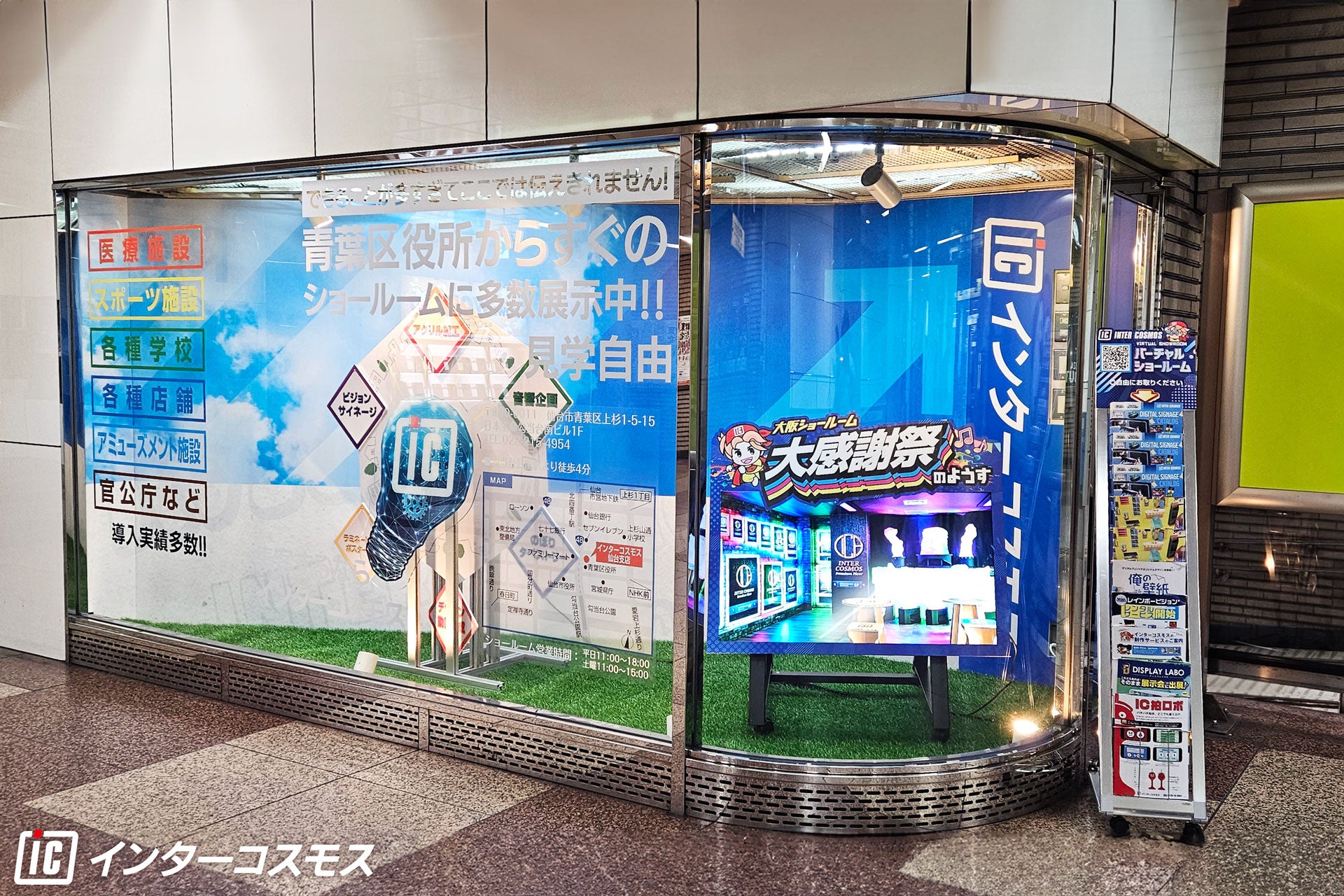 LEDビジョン・デジタルサイネージ商材をご紹介!! 仙台駅構内のショーウィンドウに新たな展示を開始!!【インターコスモス仙台支店】