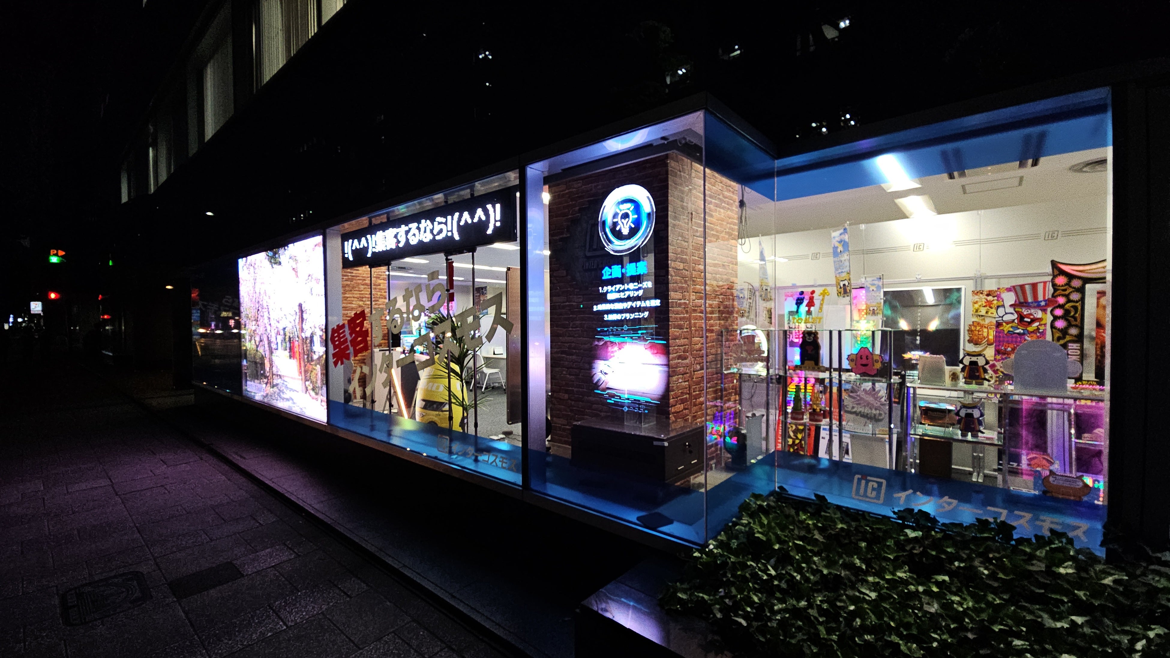 今回の展示では最新のLEDビジョン・デジタルサイネージ商材を展示している本社ショールームを映像にてご紹介。インターコスモスが持つ革新的な空間プロデュース技術とデザインが融合した装飾をご覧いただけます。