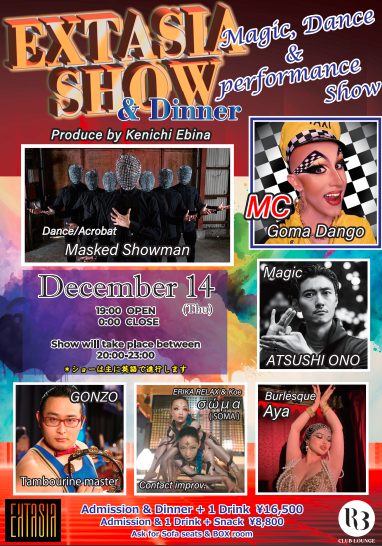 12/14(木)R3ClubLounge(六本木)にて、EBIKENプロデュース世界最高峰のエンタメショー「EXTASIA Show&Dinner」が開催!