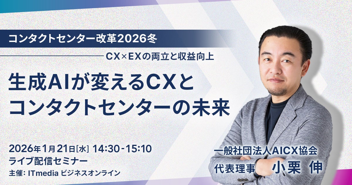 株式会社ビジョナリーエンジン(本社:東京都港区、代表取締役:小栗 伸)の代表 小栗伸が、ITmediaビジネスオンライン主催「コンタクトセンター改革2026冬」に登壇します