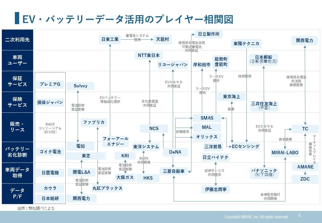 EV・バッテリー相関図と事例で業界構造を可視化──AMANE、業界プレイヤーの関係と注目プロジェクトを整理したレポートを公開