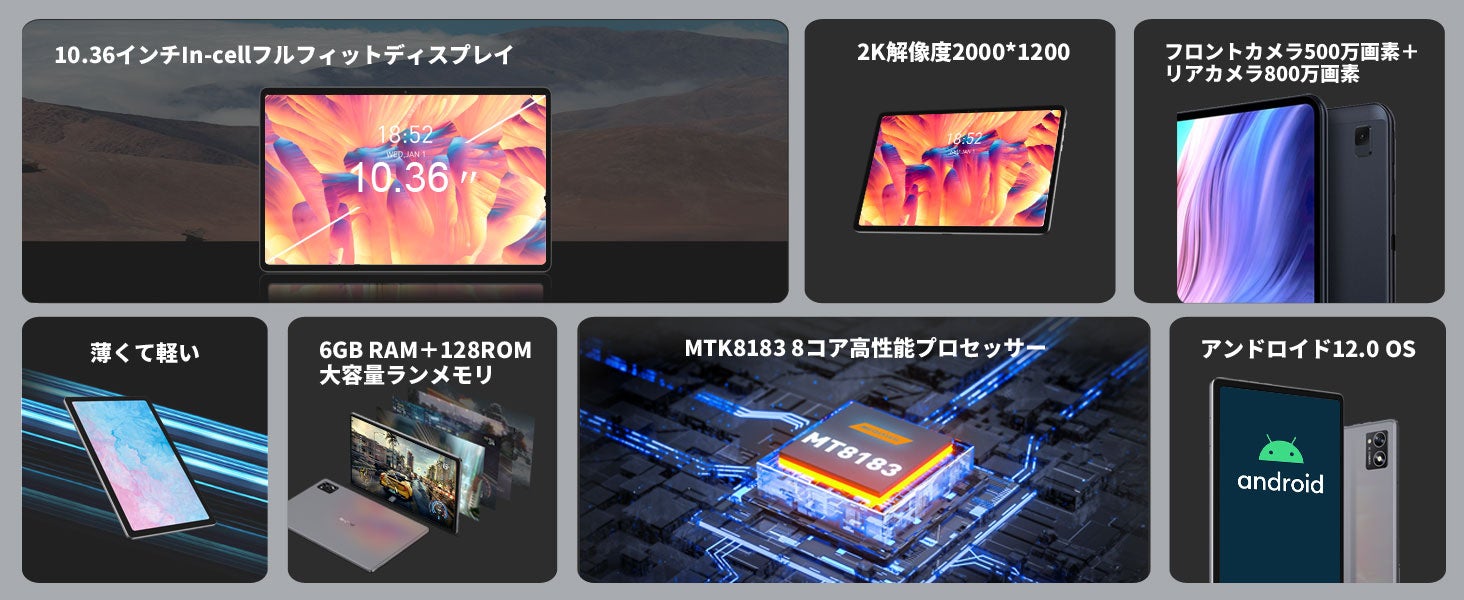 解像度1920×1200 FHD、輝度300cd/m2(Typ)の10.1インチBOEテクノロジーIPSディスプレイを搭載しています。色彩最適化技術T-Colour 2.0により、有害なブルーライトをカットしながら鮮やかな色彩を実現します。採用されたTDDI技術は、タッチセンサーを追加層なしで液晶の既存構造に組み込むことで、反射を大幅に減らし、光透過率を向上させ、画質を向上させることができます。