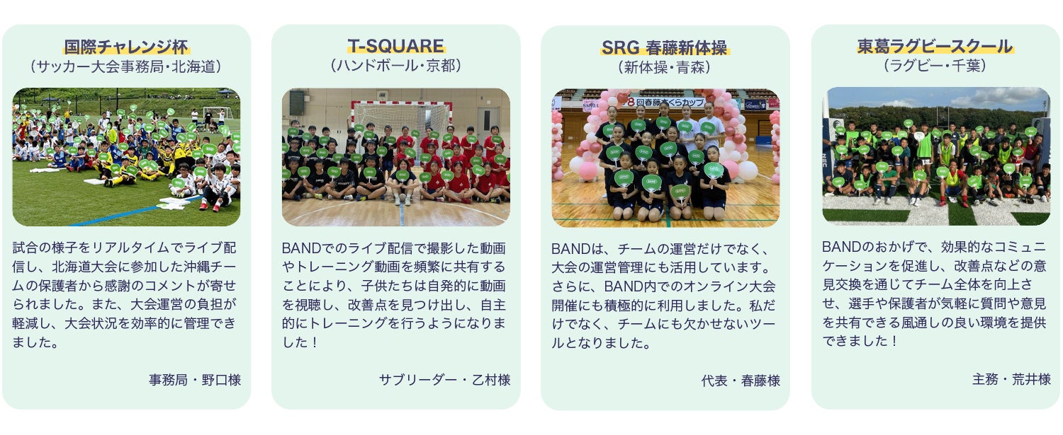 大会開催後、大会やBAND活用に関するエピソードをSNS投稿、またはインタビューという形でお伺いしております。