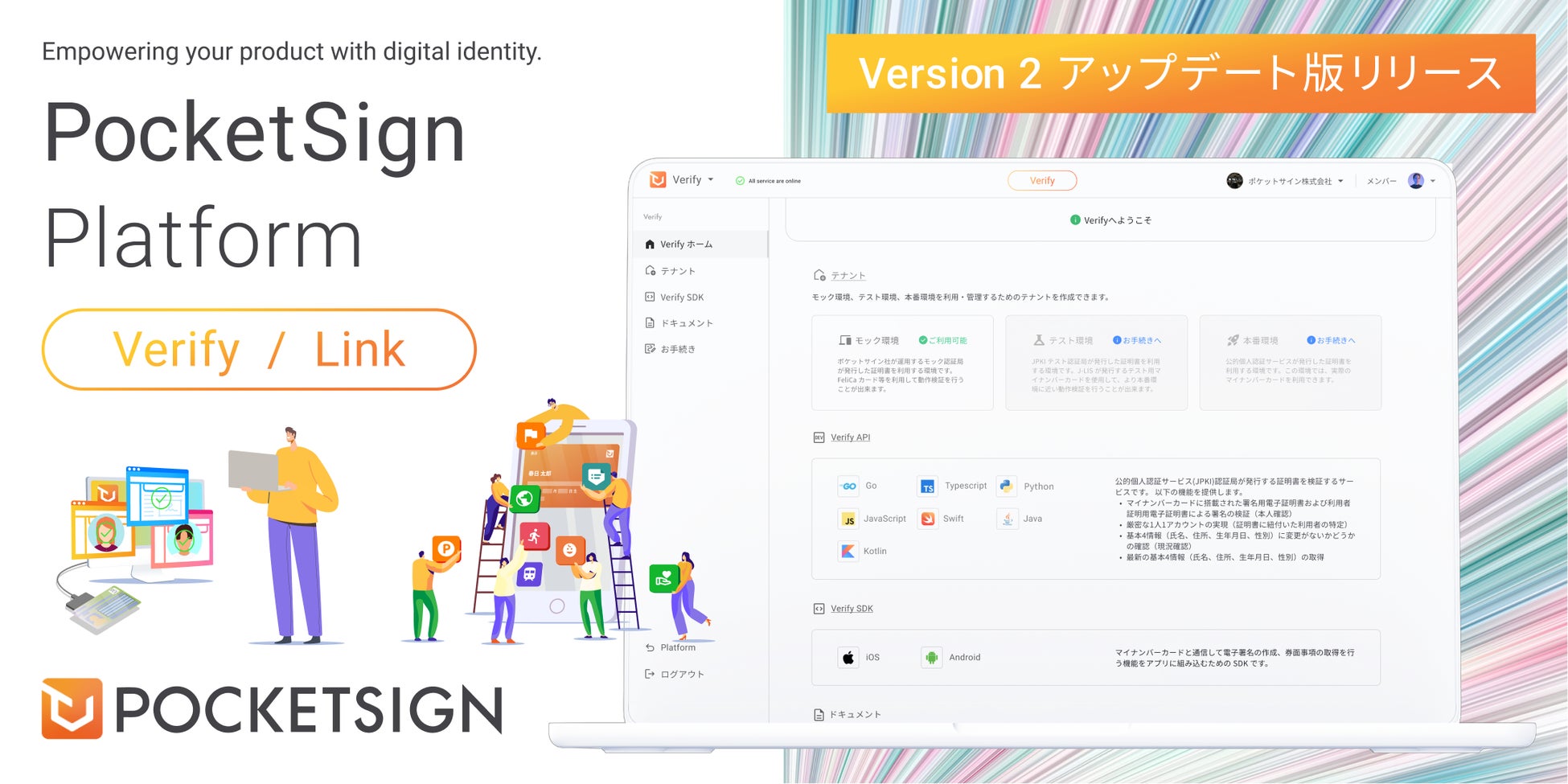 公的個人認証サービス総合プラットフォームサイト「PocketSign Platform」の “Verison2” をリリース、さらに新サービス「PocketSign Link」を公開しました。