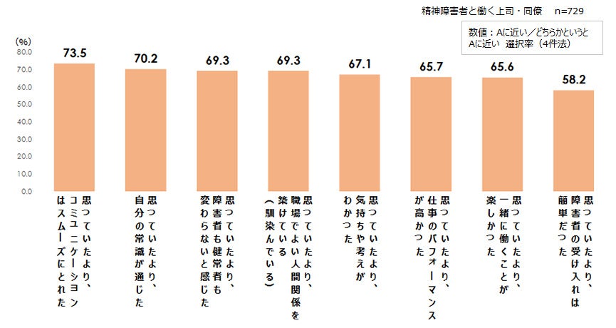「精神障害者雇用の現場マネジメントについての定量調査」を発表 精神障害者と働くことで、上司・同僚の約7割が前向きな意識変化を実感